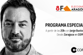 También a las 19:30h, Aragón Radio emitirá su 8F: Especial noche electoral, conducido por Esperanza Sánchez y con el apoyo de Fabiola Hernández, Gema Ara, Ainhara Güerri y Sara Lambán. A las 20:00h, la emisora ofrecerá el sondeo de GAD3 y lo analizará con una mesa de expertos formada por Ángel Luis Monge, Juan David Gómez Quintero, Juan Bolea y Verónica Crespo.