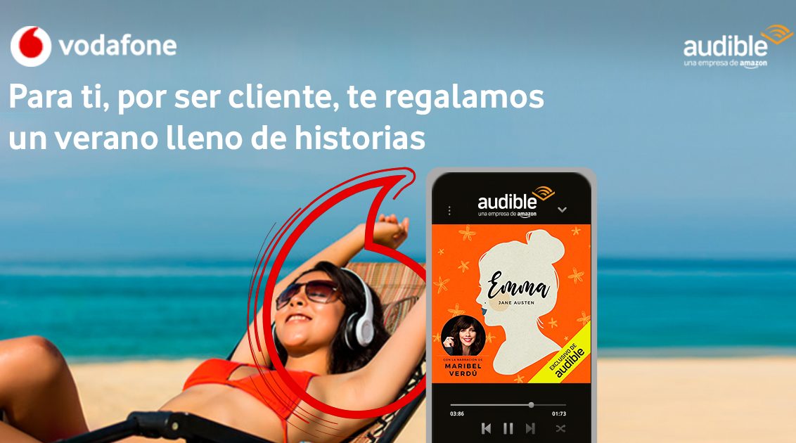 Vodafone regala a sus clientes 3 audiolibros de Audible (Amazon) y doble de gigas en tarifas yu
