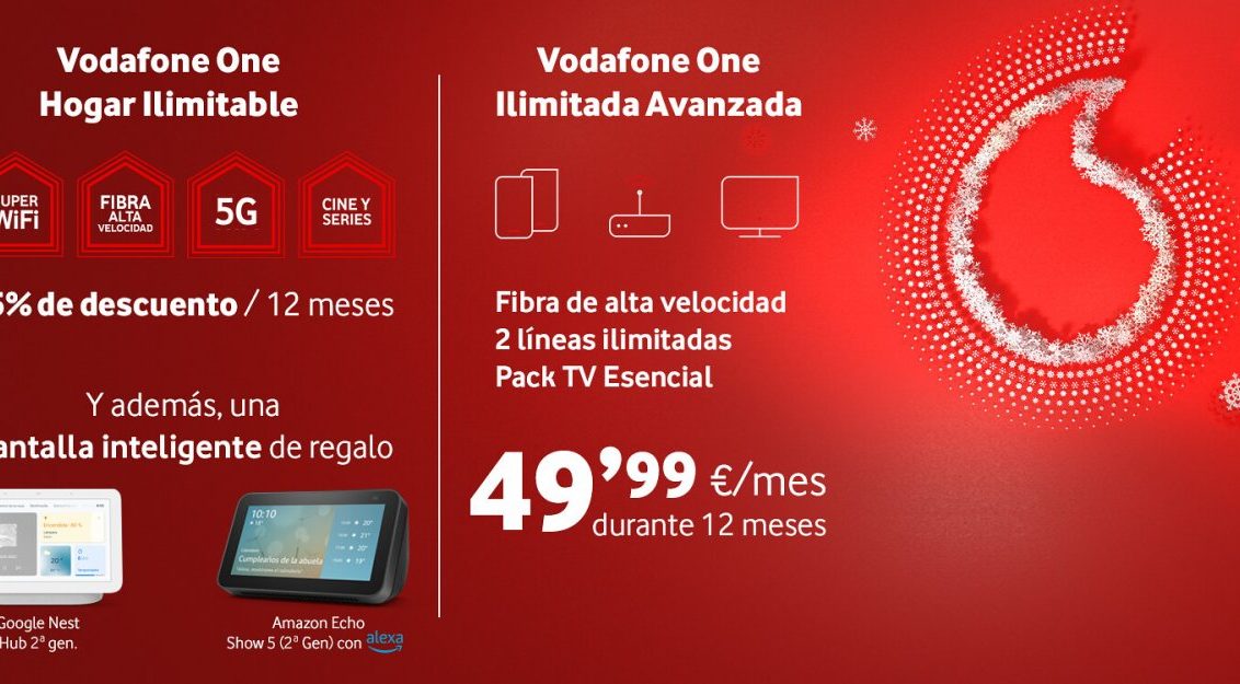 Esta Navidad, Vodafone One Hogar Ilimitable, con un 25% de descuento durante 12 meses y una pantalla inteligente de regalo